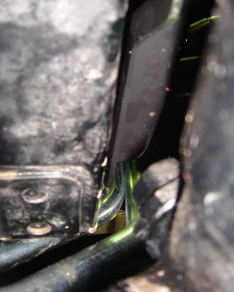 NOTICE:When drilling new holes in the front frame extension to relocate the horns (as instructed above), you may end up with the horns positioned very close to touching the round cross tube of the frame. See photos and recommendations in article ET-109D in the electrical section.