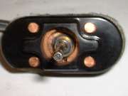 Upon removal of the outer shell, inspection into the front of the device (second picture above) reveals that the return spring is discolored, collapsed, and broken into multiple pieces. This is obviously the result of the spring having carried a high electrical current, causing it to heat to high temperature so as to lose the spring temper. In normal assembly this spring would extend from the moving parts on the pull rod to the inside front of the metal case, and would be in compression when at rest. This spring provides force to keep the moving plunger seated in the rearward position when at rest, the resistance to pull on the spindle, and also the force to return the draw cable and dash mounted pull knob when released. This spring will be electrically grounded to the case inside at the front, so the next question is how it came into electrical contact with the normal power carrying parts, which it should never touch.