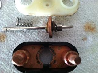 "With a bit more looking at your article and pics, I see that there IS a washer between the small spring and the insulator, and that washer is missing from my assy. Guess the Chinese kids were having a bad day or two on some of these. But trying to shortcut and use steel for the contacts is bad juju".