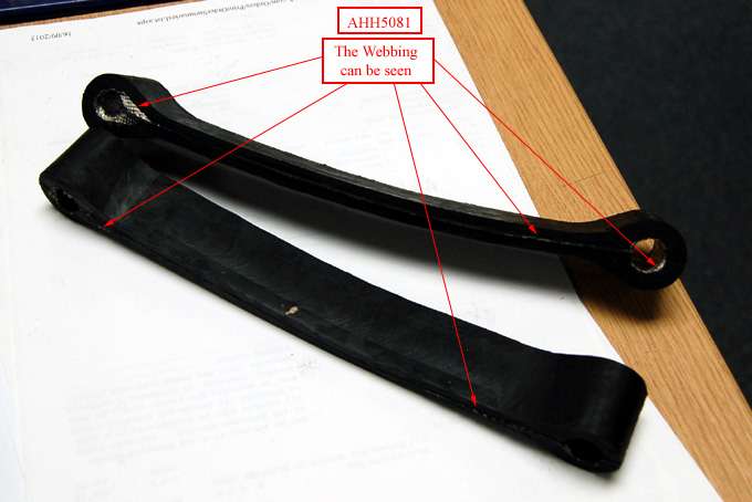 "I bought a set of straps in April this year which have also failed, but in a more worrying manner. I suspect that most owners who purchase these will never be aware that they are not working. The straps will stretch indefinitely (until the axle is supported by the springs and or exhaust), but when load is removed they revert to their original shape. I have informed the supplier and have so far been pretty much fobbed off. Initially I was told their parts were good and they even had installed a test fixture to check (although it seems it is no longer used!). I sent the pictures to explain that all was not well with their parts and was told they would investigate. .... but so far no response. I bought mine from Moss Europe".