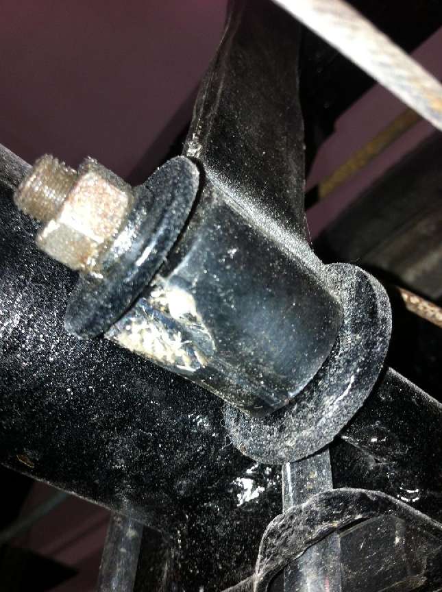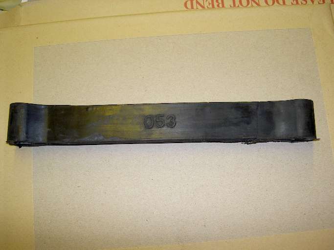 ".... having to use my forklift to hold my frame down so I could jack up my new Moss Motors leaf springs so that the rebound straps could be fitted. The leaf springs seem to have too much arc to them. .... Once all was hooked up, we lowered the rear end and as soon the jack was down the springs caused the rebound straps to completely split across the top on both sides."