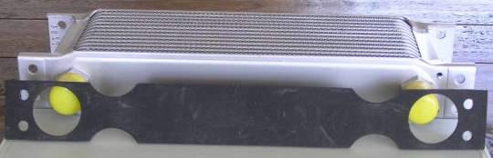 Second problem is, for this application the original oil cooler had mounting flanges on one face only, same side as the ports. If you want a better look closer to originality, you can trim off the unused mounting ears that will be on top of the oil cooler when installed (and repaint the cut ends).