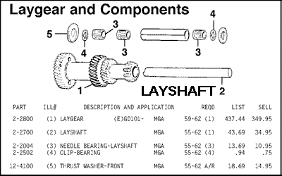 Note that the older softer shafts are still being sold under the original part number. I suspect they will continue to be supplied until inventory is depleted. Let the buyer beware. If you want a properly hardened layshaft you must order the part number for the "uprated" part. The new part number is not yet listed in the Moss USA catalogs or on the Moss USA web site.