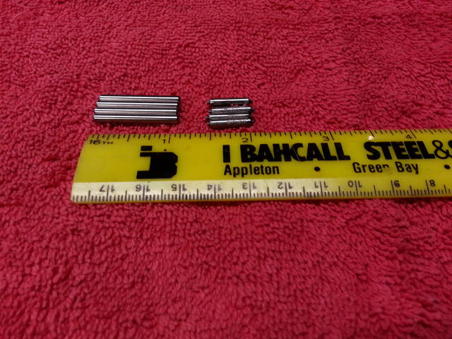 Last week end I removed this layshaft (below) from my MGA after 5-1/2 months and 24,500 miles in service. It is the same formula as the one above, the earlier softer shaft, mated to 11-roller cartridge bearings. I was expecting it to last about twice as long, but no joy. I really hate having to pull the engine to rebuild the gearbox twice a year due to faulty parts.