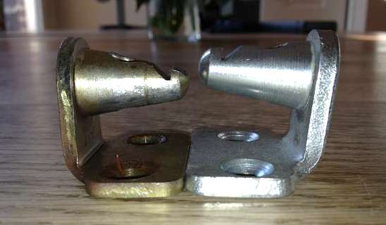 "I ordered replacement door striker plates .... went to replace them and found the door won't close with the new ones in place. On closer inspection, the size of the plate is pretty far off the one I have. The attached pictures and the below measurements show the differences that appear to affect fit. Base thickness (the mount screws pass through)- Old Part: 10/64"; Moss Part: 15/64". Distance from base to center of taper - old part: 61/64"; Moss Part: 70/64" (1-3/32"). Also, the major bend in the old part appears to be at a right angle, but the new part is maybe 10 degrees out of square. The net effect is that I can't line the taper up with the door opening. The blunt end hits the door surface.