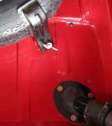 "I drove my car over a speed hump and the spare wheel made a loud bang, so thought it best to try and fit your part anyway. .... If you wedge this pin in with two split pins, one either side, if there is no load on the spare wheel retaining spike the pin simply falls below the split pins and falls out".