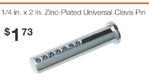 "I found a 1/4 in. x 2 in. Zinc-Plated Universal Clevis Pin from Home Depot worked as a great replacement. And it only cost a $1.73! It’s not for the concurs buffs, but for the average Joe it’s cheap and effective".