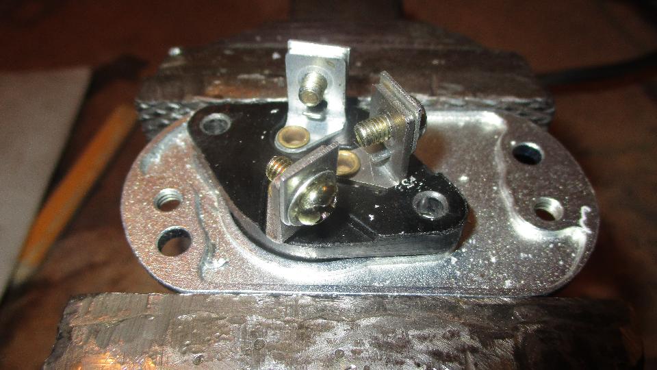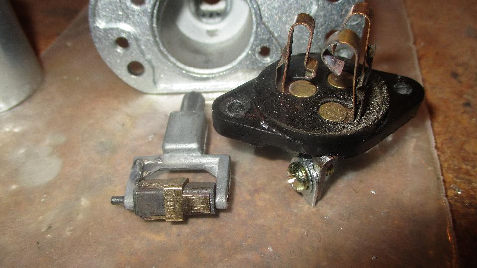 Doing an autopsy on the failed dipper switch. Not long to drill out two rivets in back and one in front to disassemble the switch, and then a few more minutes to get some photos of the internal bits.