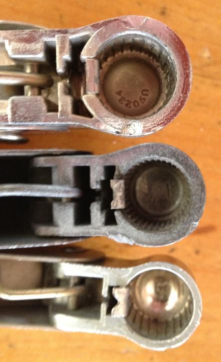 "The center arm is an original, the top and bottom, replacement Tex items. The diameter of the replacement arms' hubs are clearly larger than the original, and the 'splines' don't even come close to the drive spline's configuration".