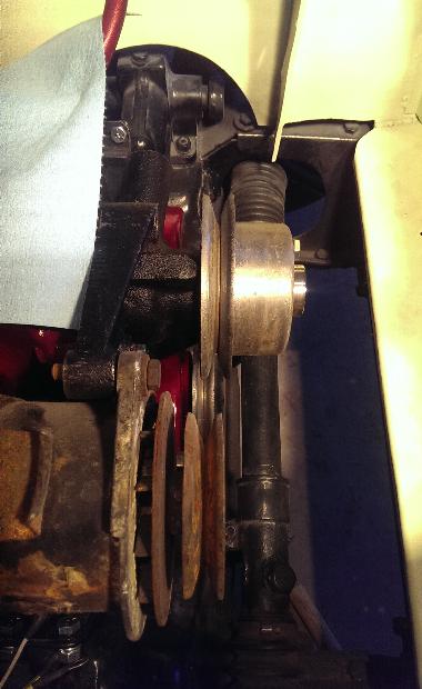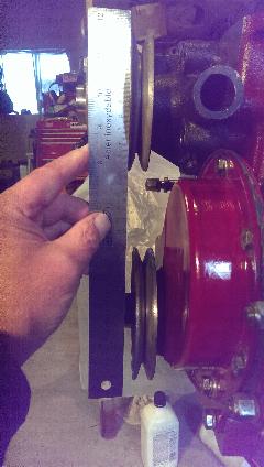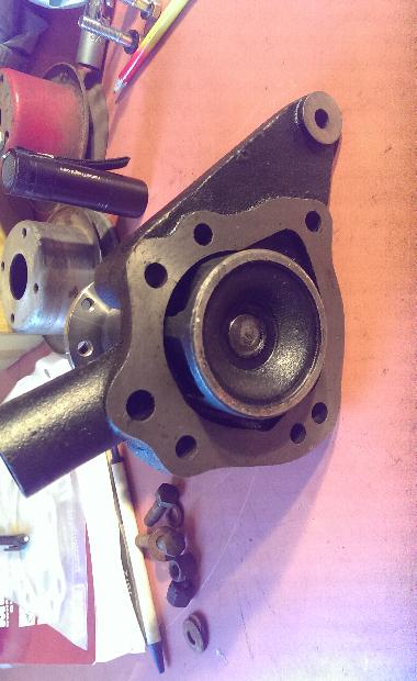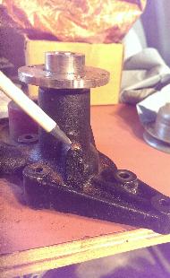 However, the deeper MGB pulley (which should put the belt groove in the correct plane) hits on a rib on the pump body casting, so the pulley cannot be attached to the pump hub.
