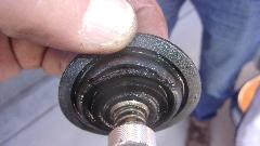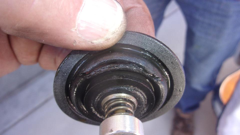 The failure point is not a crack or clean tear. The rubber has the consistency of sticky chewing gum, a result of less than 10 months soaking in standerd green antifreeze, 50/50 ethylene-glycol and water (bad rubber).