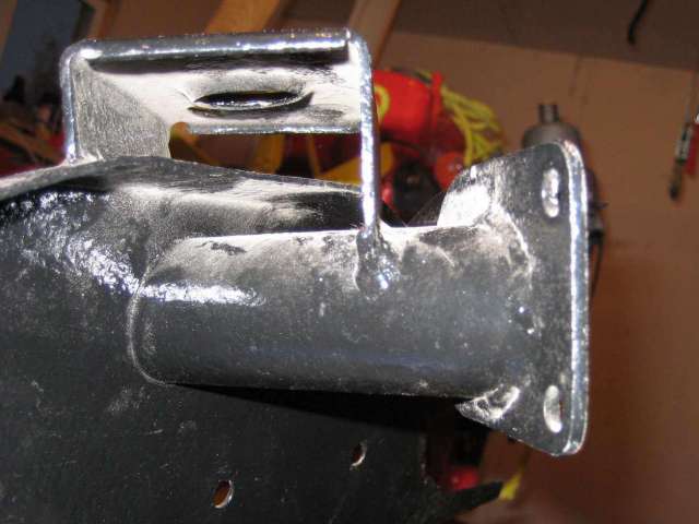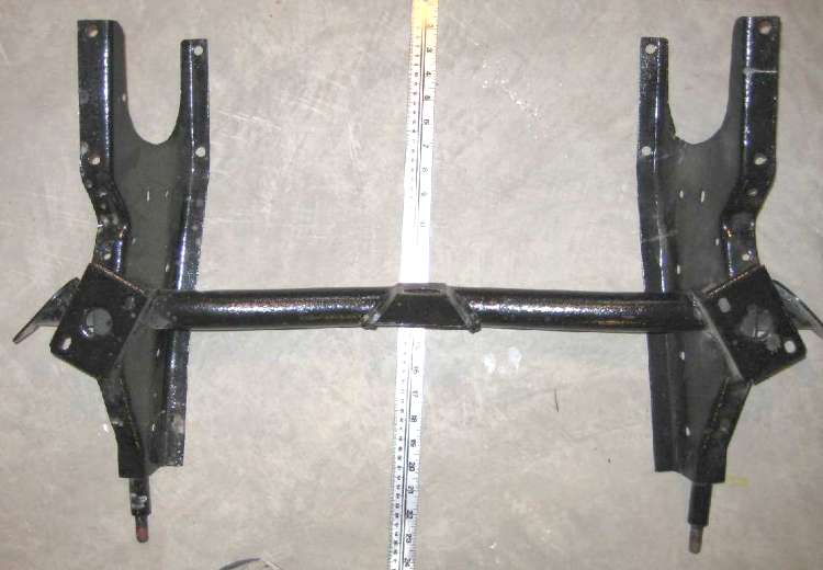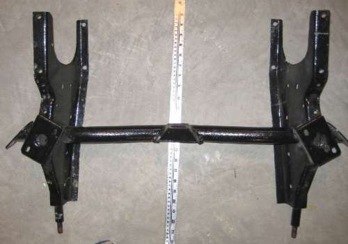 NOTE 2: The exact original design dimension between sway bar mounting holes was not known when this was published. Measurements vary on a single frame and also vary from one frame to another. I would speculate that these holes (for the later issue frame) were punched in the flat stock before forming. Exact location left to right is not important, as long as the brackets fit. A slight variation of width between mounting brackets does not affect function of the sway bar.