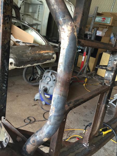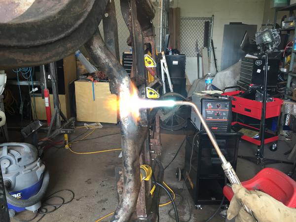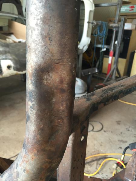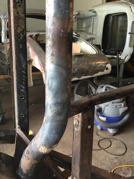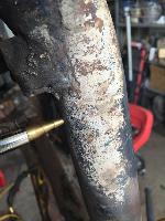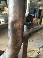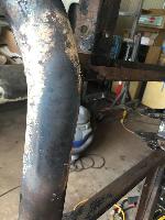 "Removed the dents in the tubular cross member. Heated the dents with oxy acetylene and pumped the tube up with air - it worked really well - the dents popped out".