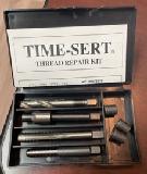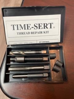 I was attracted to the Time-Sert brand as it consisted of a thin solid sleeve that would be screwed into a newly tapped hole. After much consideration and a lot of the "gulp factor" when I considered the cost compared to Heli-Coil, I ordered a Time-Sert kit in the proper size. In due time a very nicely packaged kit arrived containing the installation tools needed plus 5 inserts and a very detailed instruction sheet. As expected, the repair job went quickly: