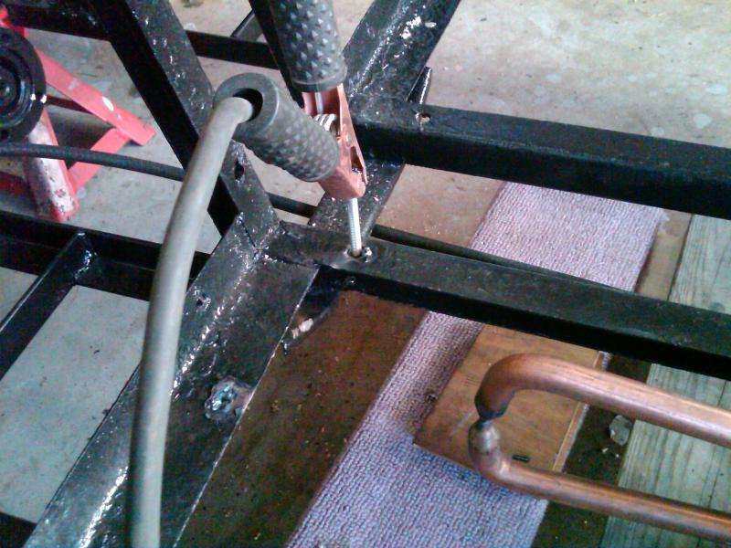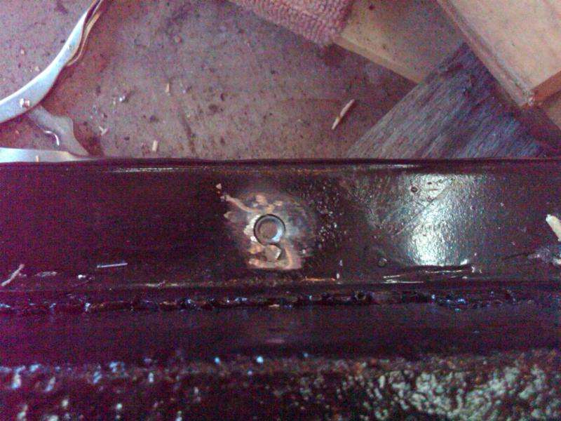 The spot welder tongs did not fit inside the heavy frame channel, so I MIG it up. A blow hole just says for me to MIG weld the hole's. If you screw it up this is what it looks like. Just do it again.