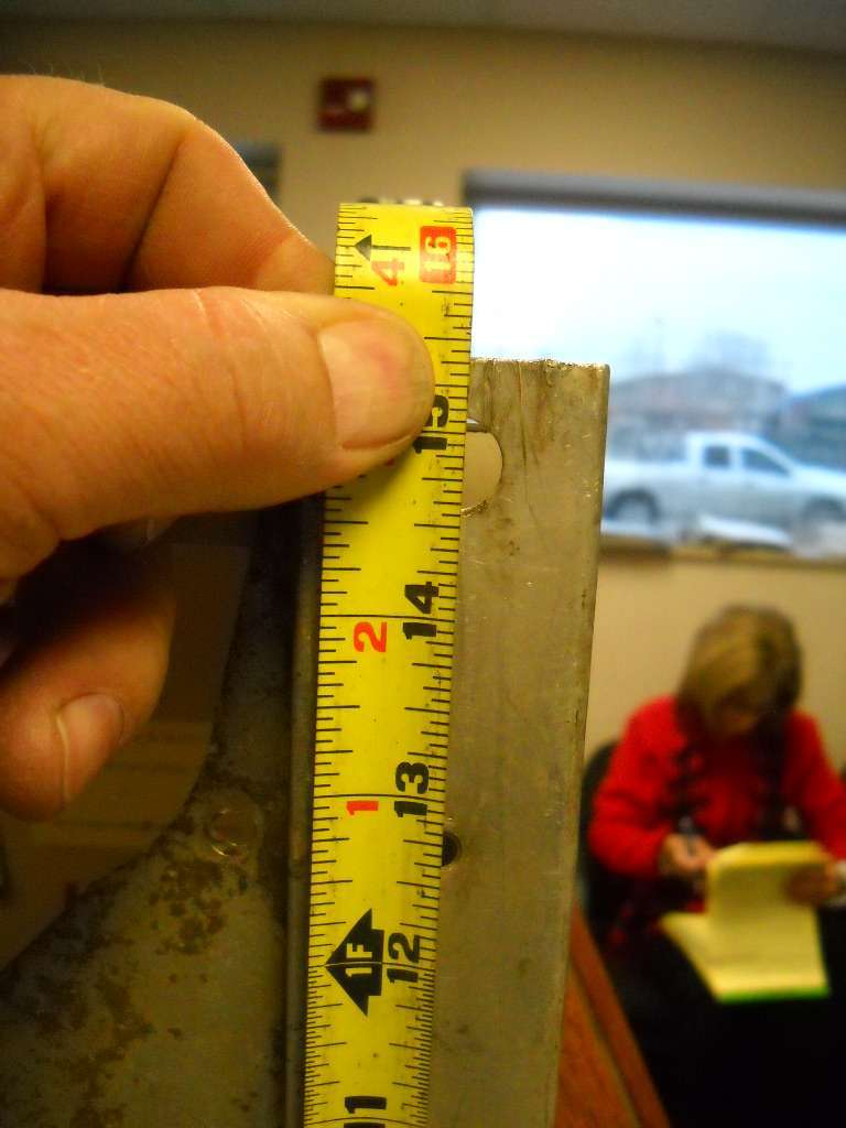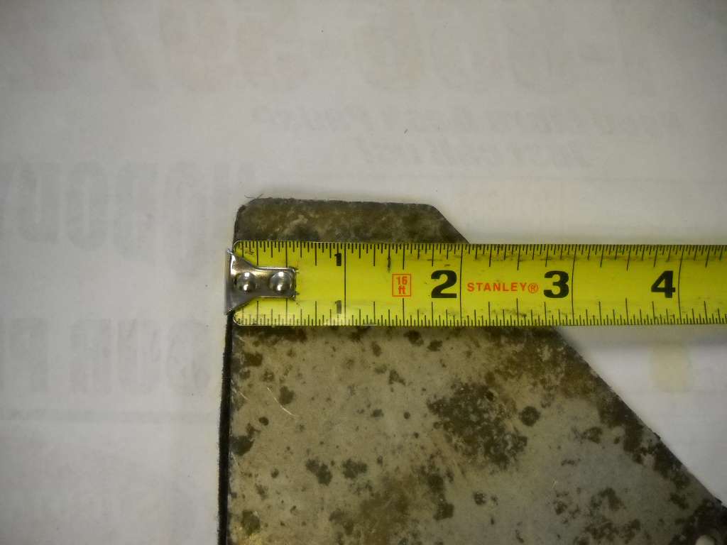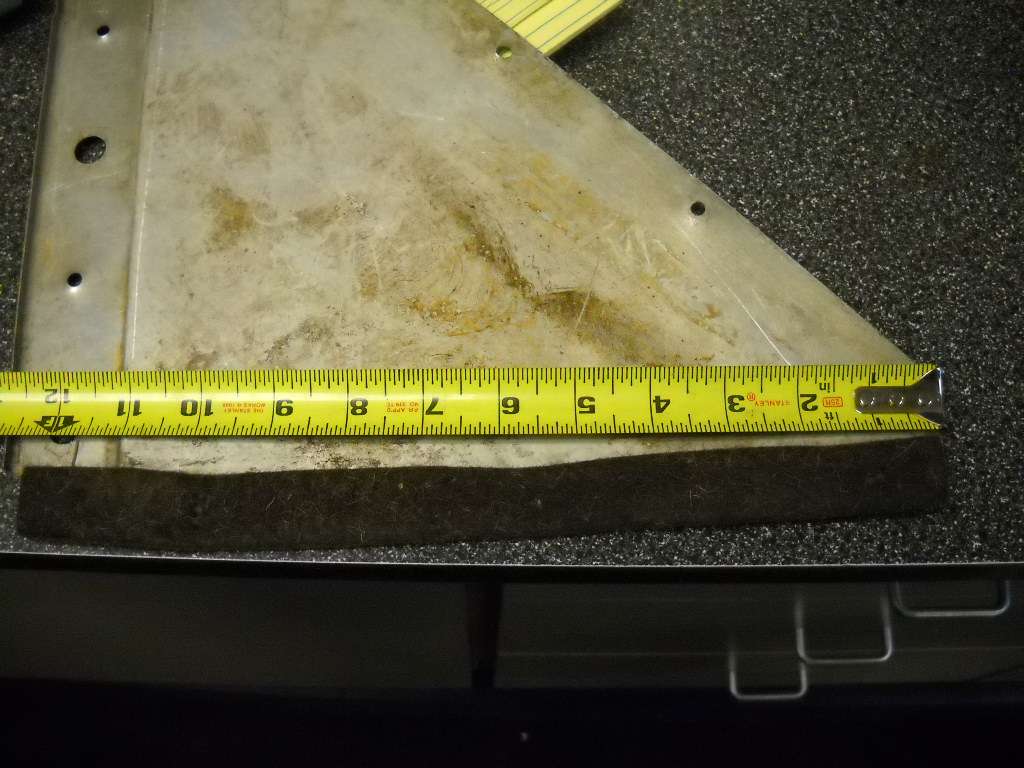 "Sheet is .032 inch thick. The channel is 1.55 inch wide inside dimension. There are (originally) three rivets that hold the 1 by 12-3/8 by 1/8 thick felt strip to the bottom edge".