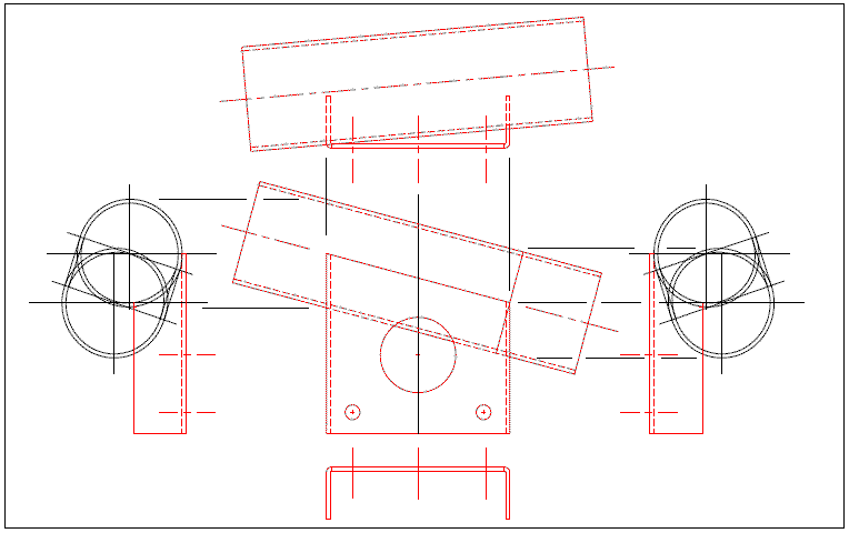 Okay, another half day of layout work to do it over with 15-degree incline and 5-degree forward angle on the 2-inch diameter tube, and we get this. Reason for the exact CAD drawing is to get the ellipse interface correct. After the final layout in the flat with proper bend allowance, the low-angle ellipse is changed to the nearest matching simple radius (within 0.010-inch) to simplify layout and cutting (or punching) on sheet metal flat stock.
