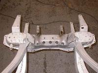 In the MGA, the five bolts at the front end of the engine oil pan are located above the frame front suspension cross member. This makes for