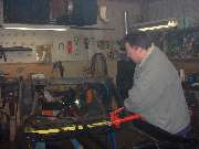 Two of the basic tools used for frame straightening, a hydraulic ram to apply strong steady force, and a good hot torch to soften the metal.
