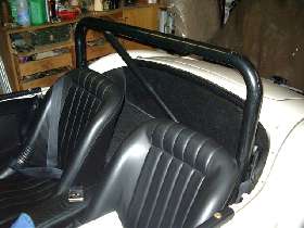 These photos and notes come from Barry Gannon in Melbourne, Australia. Notice first that this installation began with removal of part of the steel body tonneau behind the seats. Also this installation will not meet requirement of most current race sanctioning groups because it is not tall enough.