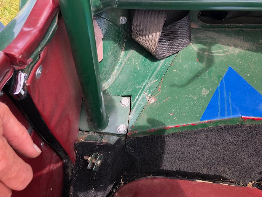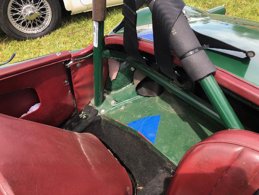 Again, vintage period correct, perhaps. Only acceptable today if it was grandfathered back in the day, and kept in continued service with a valid racing log book with no time gaps. It would otherwise not be acceptable for competition today (by most race sanctioning organizations) due to lack of fore/aft braces near top of the main hoop.