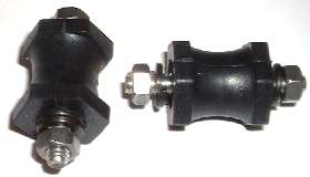 Thanks to Jonathan Hillyer for the tip ln finding these parts. If you happen to find yourself using one of the noisy aftermarket fuel pumps, there is a way to silence the beast. This is easy, and not much of a trick at all. The picture shows a pair of small rubber isolator mounts. These are 1 inch long with 7/8 inch hex ends, and 6 MM (almost 1/4 inch) threaded studs on both sides. Just install a pair of these little nubbins under the fuel pump using the same holes you would if the pump was bolted directly to the panel. It raises the pump an inch from the panel, and puts a nice damper on the noise.