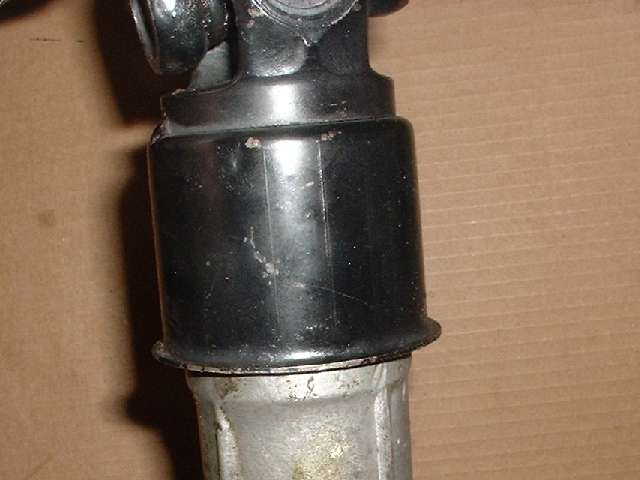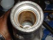 A part commonly showing wear in a high mileage MGA 1500 gearbox (most of them by now) is the large bushing at the rear of the tail housing. This bushing is responsible for supporting the front yoke of the propshaft, allowing it to ride fore and aft on the output shaft splines, and maintaining alignment of the yoke with the internal oil seal. When this bushing gets worn the front yoke of the propshaft can wobble around and cause vibration when running, and the oil seal can take a beating and allow the oil to leak out of the gearbox.