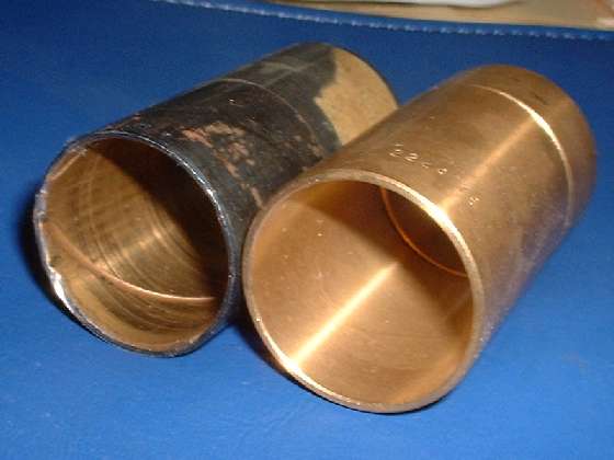 Unfortunately this bushing has been unavailable as a replacement part for the past quarter century or so, and the supply of used rear housings with a serviceable bushing is dwindling fast (like pretty much gone). The expedient repair is to use a plain 660 bearing bronze bushing available from most any bearing supply house. The required bushing size is 1-3/8" ID x 1-1/2" OD x 2-3/4" long. Off the shelf parts are not available in that length, so a 3/4" long piece is installed first, followed by a 2" long piece to make up the required length. Clean the housing, apply a few drops of bearing set adhesive, and tap the new bushing into place.
