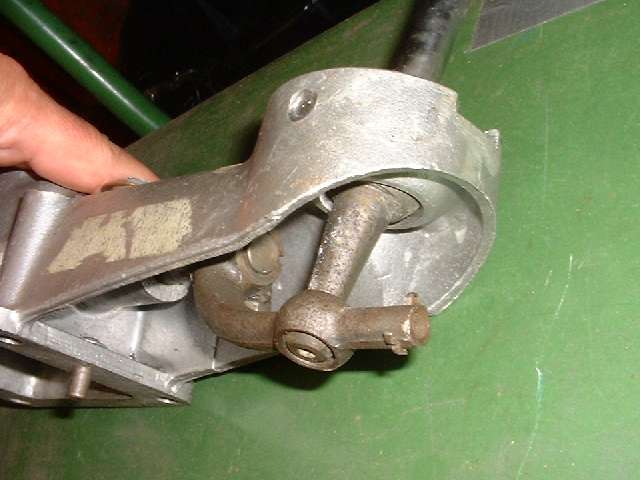 At the bottom end of the hand lever is a smaller ball (160) which sits in a cylindrical hole in the rear lever (163). The rear lever on the remote shift rod has an extension at the back which carries an anti-rattle detent ball (160) and spring (159) secured with a split pin. If you pull the hand lever out the top, the small ball will likely be lost. That results in a nasty noisy rattling vibration of the hand lever at an engine speed right around highway cruising speed in top gear, which may drive you nuts on the open road. It may also vibrate and rattle at idle speed, or slightly faster, depending on mass of the shift ball you may have installed. When the unit is in the car, this split pin lies above the gearbox tail housing and propshaft connection where it is generally inaccessible. So if you need to fix this problem, the shift extension assembly should be removed to gain access to the anti-rattle detent parts.
