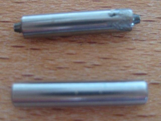 Gertjan Yntema has this suggestion for replacement needle bearings for the MGA and early MGB layshaft: "What I have done is ordered new needle bearings, sized 3mm diameter and 15,8mm long and reused the ORIGINAL rings that held the original needles in place. I could use them without any modification with the exception of one ring that needed its protruding side sanded off. I have made a drawing to illustrate what I have done. Mounting the needles requires some fiddling around and an old shortened layshaft, but that will be at hand anyway, and an angled grinder we all have, right? The result is that the proper amount of needles is supporting the laygear which is so important as you say". [click for larger images]