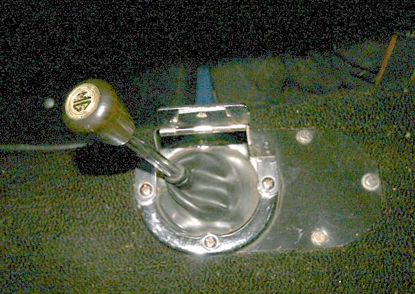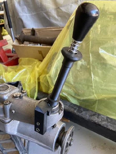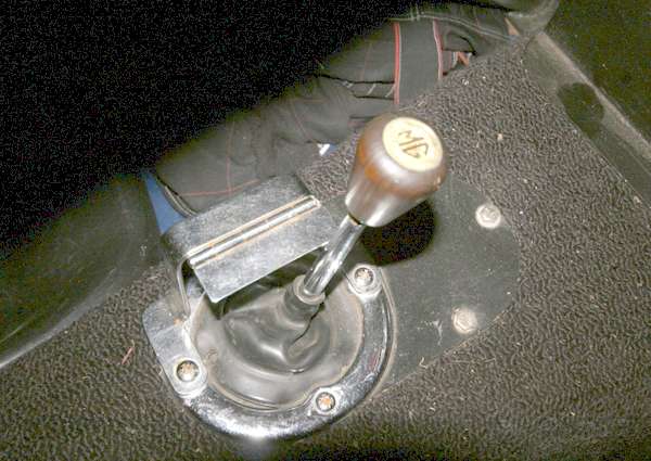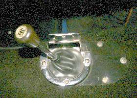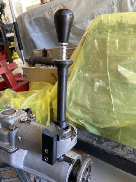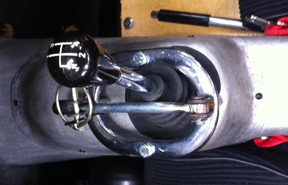 "I was looking for a reverse gear lock out for the replica of Bob Olthoffs car I have built, As an alternative to the hinge I think this might be better. I am not sure it has been done on an MGA before? The chrome ring is MGB".