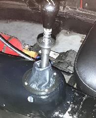 Malcom also wrote: "Here's my just finished shift boot, mounted on experimental reverse lockout, no holes drilled in sheet metal, 3D printed rings, and Amazon $6 vinyl boot (and a lot of fiddling)".