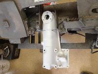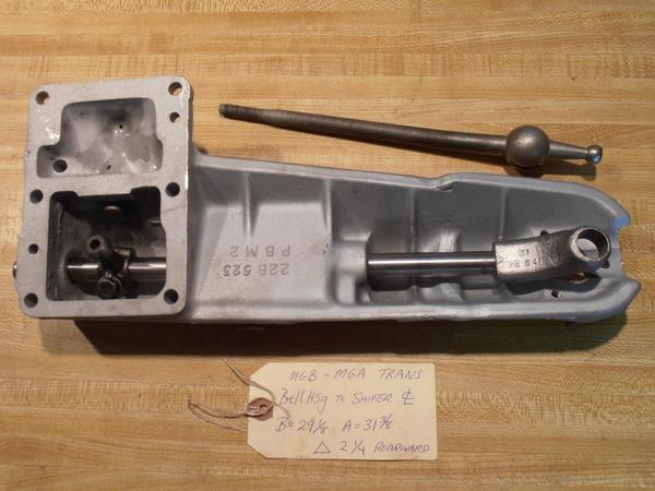 Dana R ("Restoman" on MG Experience server) in Amston, Connecticut, USA, has this shifter modification to offer. When installing an MGB gearbox in the MGA, the hand shift lever will be located 2-1/4 inches forward of the normal position for the MGA. This may be an uncomfortably long reach for some people, or you might bash your knuckles on the heater control parts. This series of pictures details cutting and welding to extend the remote shifter housing to relocate the shift lever more rearward to normal position for MGA.