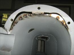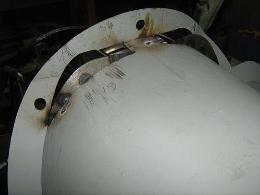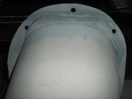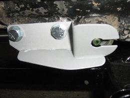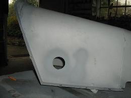 I aimed to have 8mm radial clearance between chassis and bell housing and this entailed cutting away the arc at the bottom of the toe board, relocating the two lower hank bushes outwards to clear the lugs on the bell housing and relocating and enlarging the flange on the front of the transmission tunnel. Even if I had cut the bell housing lugs back to clear the toe board, the picture below left shows that the lower corners of the toe board arc and the existing hank bushes would interfere with the bell housing. The extent of cut to get 8mm clearance is shown in the picture below right.