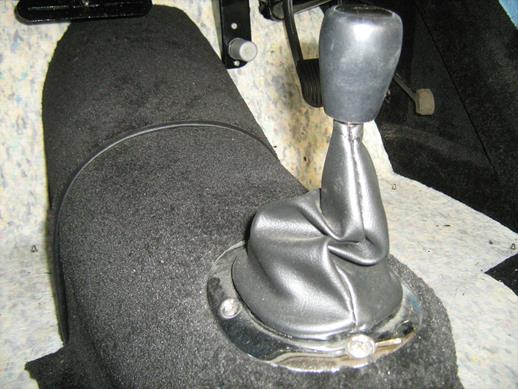 There are reports that the original MGA gear lever gaiter can be restrictive. A late MGB gaiter was used along with its chrome trim which had to be bent downwards at the sides to suit the narrower MGA tunnel. The MGB gaiter’s spigot is oval rather than round and the circular hole in the tunnel has to be slotted forwards. The gaiter sits on top of the tunnel with its spigot into the oval hole. The trim is fixed with self-tapping screws into U nuts in the periphery of the oval tunnel cut-out and retains the carpet.
