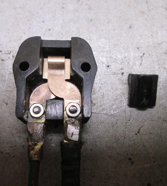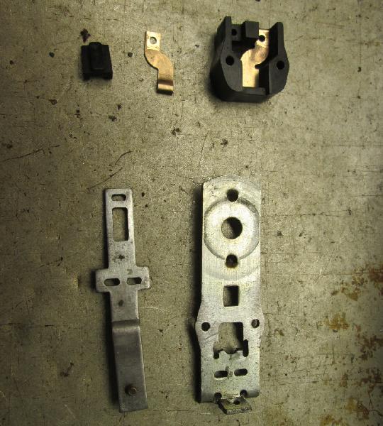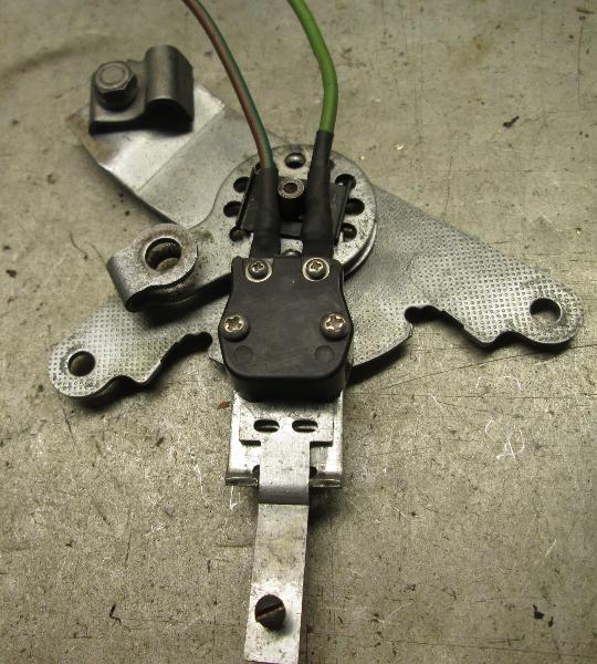 "Here are a few pictures of the guts of the new style heater switch. The problem with the loose terminal was broken Bakelite around the rivet. A little JB Weld and some carving and it was as good as 65 years old. The hole for the terminal is 5/64-in. The Hillman boxes at the hardware store have miniature stainless screws. The terminals take a #1 screw (one 3/8-in, one 1/2-in long) and the mounting screws are #3 (should be 5/8-in but that wasn't one of the choices). The screws need to be cut down even with the nuts to keep the terminals from shorting out against the lever in one case and to fit between the lever and the mounting bracket in the other. The only tricky part is catching all the bits when driving out the mounting rivets (drill the heads off first). The browN/Green wire is for a Norton brake light. Close but not quite, they don't have a heater fan".