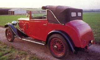 A special M.G. Six Mark-II 4-speed with body by Carlton Carriage Co., built for University Motors, Ltd. (UK). The cant rails from rear pillars of doors forward fold inward, and the canopy can then be rolled back and secured, converting the body into a modified coupe de ville. The hood also folds down to make a fully open car. There is considerable space in the tail for luggage.