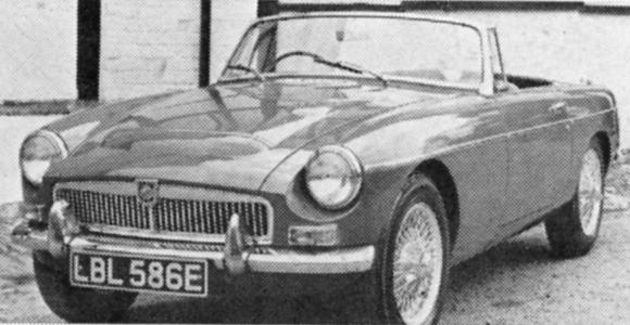 Development of 'MGB', with 2912-cc, 6-cylinder engine (145 bhp at 5250 rpm); torsion bar front suspension in place of coil; Girling brakes with servo in place of Lockheed; all-synchro 4-speed gearbox or Borg-Warner automatic transmission; 15-inch wheels (wire or disc) in place of 14-inch; Roadster or GT body.