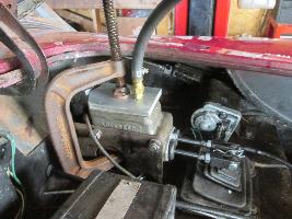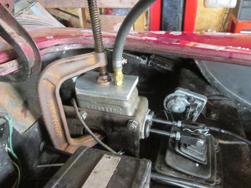 I had the master cylinder sleeved and rebuilt it. All the flexible lines and slave cylinders were replaced. Gravity was not going to bleed the system as quickly as I would like so I made an adapter for my Motive brake bleeder. A one gallon garden sprayer would work and would be simpler adapt. The only fitting you would need is one with 1/4 inch compression on one side and 1/8 NPT threads on the other.