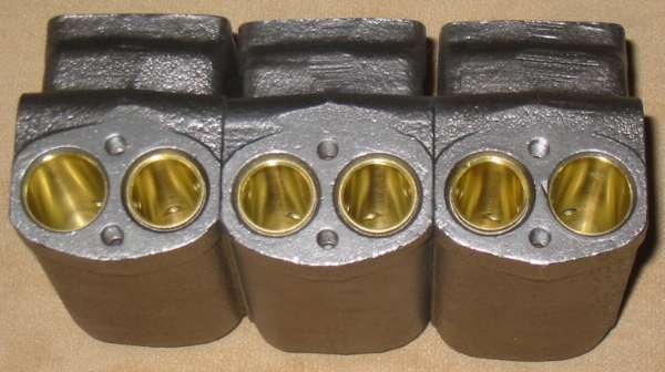 There are special circumstances that would require changing bore size of the dual bore master cylinder. An early 948cc all drum brake Midget or Sprite with engine and gearbox being upgraded from 948 to 1098 will need large bore for brakes and small bore for clutch. A 1098cc Midget or Sprite being upgraded to 1275 engine and gearbox will need small bore for brakes and large bore for clutch. In these cases the dual bore master cylinder could start out with 3/4" bore and have one side bored larger, or it could start out with 7/8" bore and have one side sleeved down to be smaller. Since the 3/4" units are more rare, these conversions usually start with the larger bore and install one thick sleeve (or one sleeve thicker than the other).