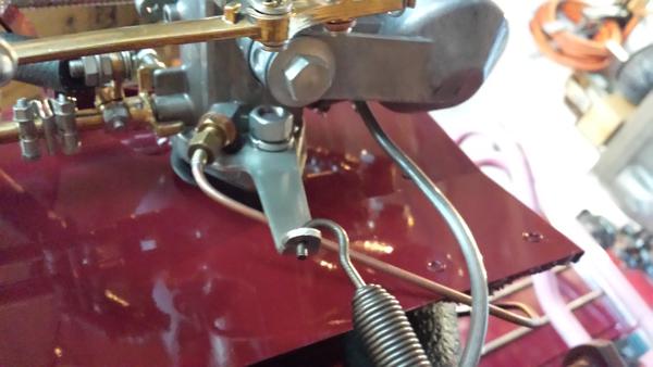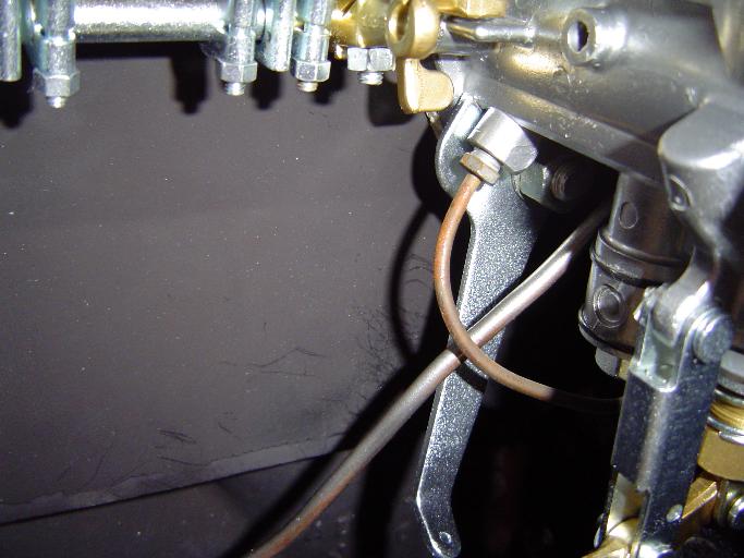 Item 34 in the illustration above was originally a long brass nipple soldered to the pipe, using a female threaded flare nut. Details of that pipe end and the required adapter fitting can be found in tech article CB-125 in the Carburetor section.