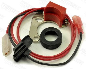Powerspark electronic ignition, similar to Pertronix, but cheaper. All the wiring and testing information is same as Pertronix. Available for many Lucas distributors, 2, 4, 6, 8 cylinders, positive or negative earth.