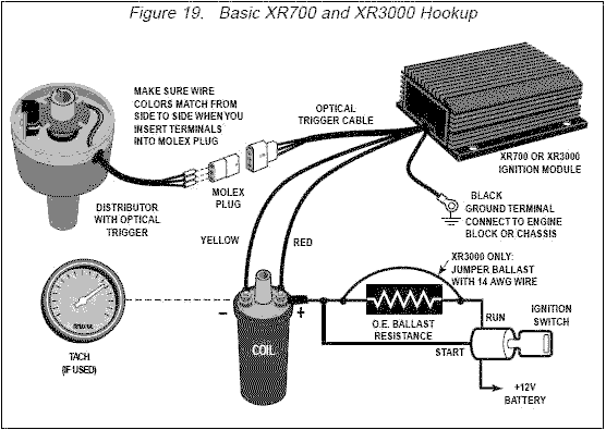 The XR700 unit is designed for ballasted ignition system, a needing 1.6-ohm coil and 1.6-ohm ballast resistor. The electronic unit normally runs on 6-7 volts and tolerates a momentary 12 volt input during crank starting (same as the ballasted ignition coil).