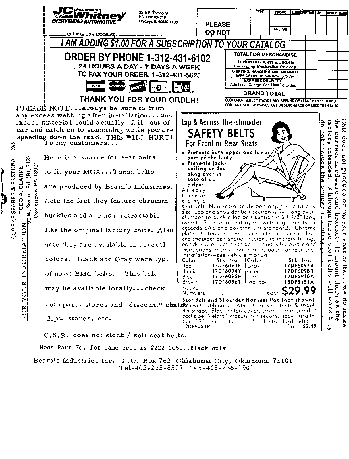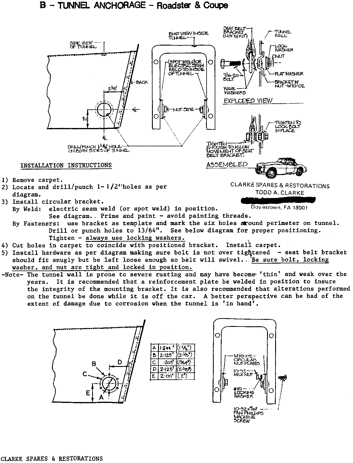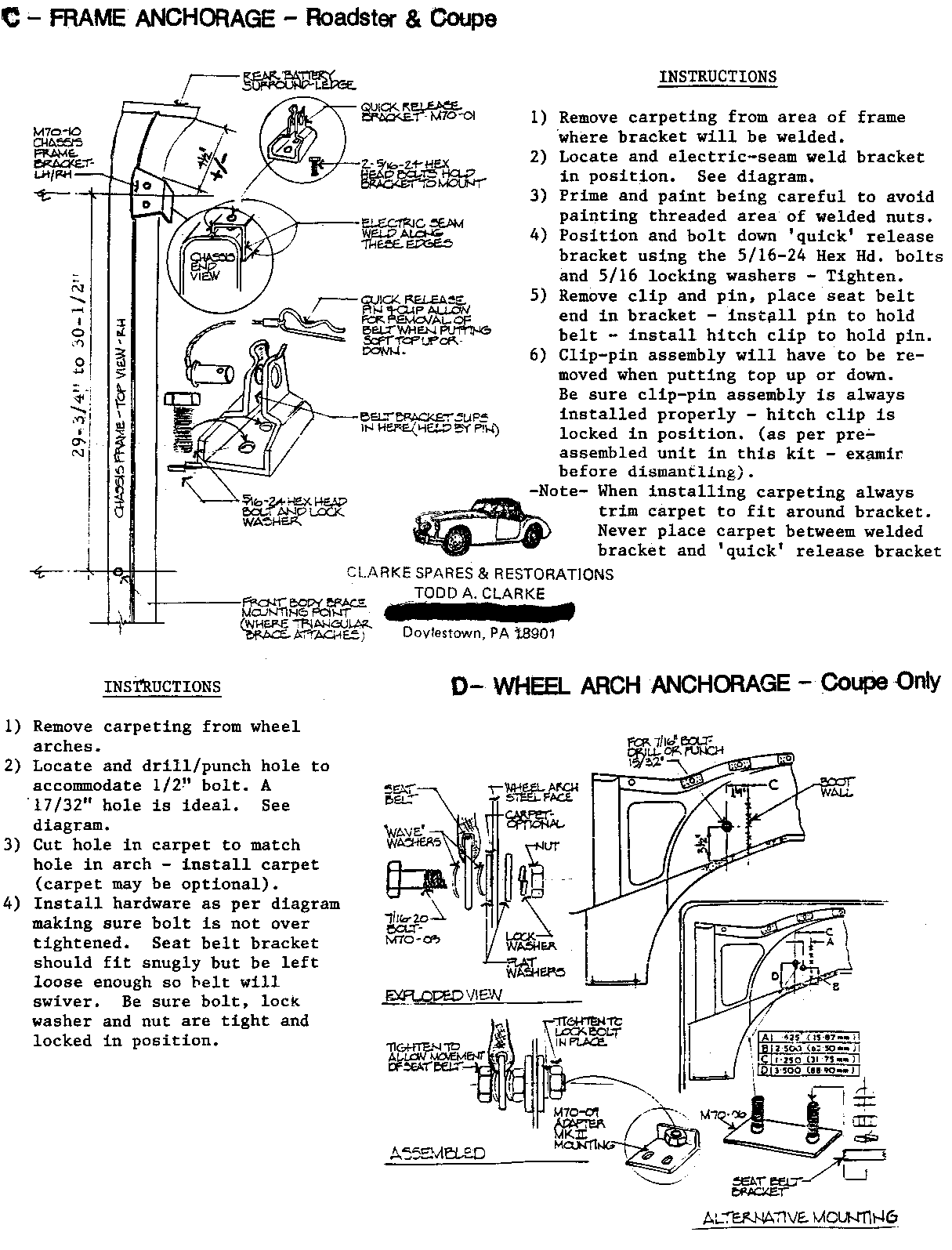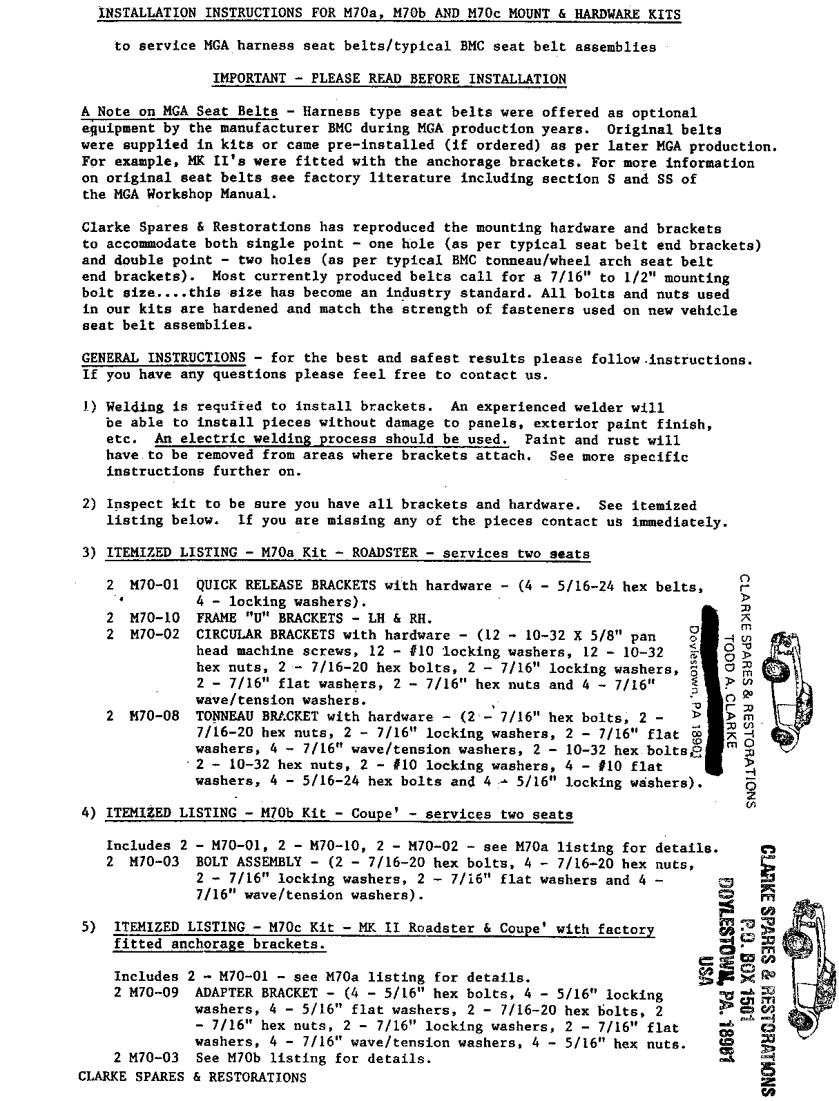 INT-124 - SEAT BELTS, Installation Instructions, from Clarke Spares