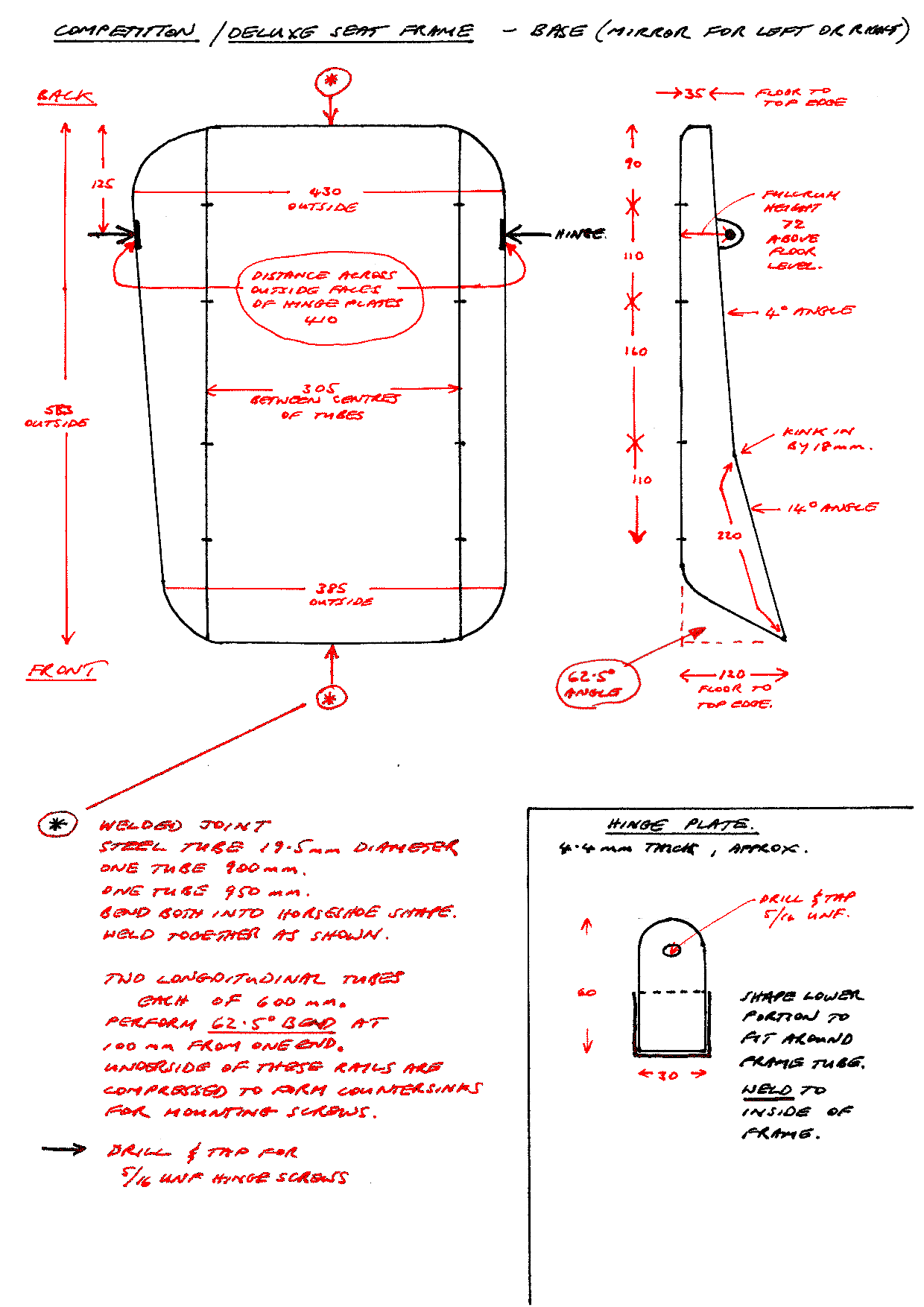 INT-112A - SEAT FRAME Dimensions for the MGA