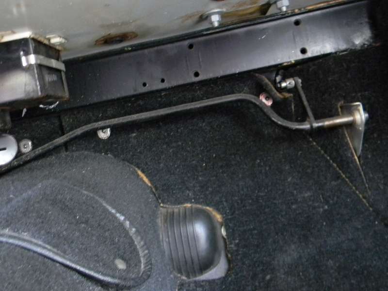 Starting in January 1959 the MGA was equipped with a gearbox having a higher starter position, which in turn required adding a clearance bump to the high right side of the tunnel, and a corresponding cut-out in the toe board. For this there is a rubber piece called "starter drive cover" which lays over the bump on the tunnel as a scuff plate (similar to the heel plate in the driver side carpet). If this rubber cover is glued to the metal tunnel bump, the tunnel carpet can be trimmed to lay around the rubber part with no need to attempt any compound contour for the carpet. The toe board carpet can then be laid over the front flange on the rubber part and can be trimmed for close fit against the rubber cover. Note that for a right hand drive car the headlight dipper switch will be mounted immediately above this starter drive cover, so the rubber part may be even more important as a scuff guard there.