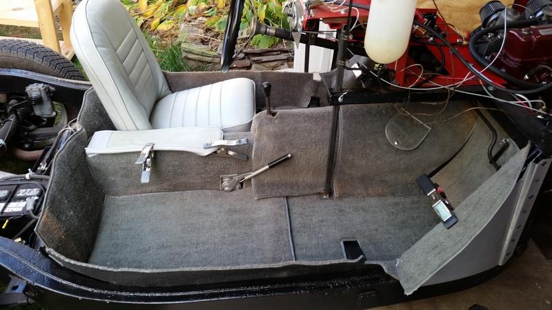 It is folly to build a street car MGA with no carpet padding (thermal insulation), as you would fry your leg on the tunnel (especially the exhaust side). Tunnel padding also helps with heat retention in cold weather. Most commercial carpet kits come with separate felt underlay for the tunnel and foot well from below the frame goal post back to front of the seats. I believe that was as original. The spare wheel bag attached to the rear bulkhead (the part forward of the bulkhead) was always carpet material. Carpet in the battery cover area was optional for roadster (standard in the Coupe), but recommended for insulation and noise suppression. I also carpet the boot (all glued in place). That makes very little difference for heat or road noise, but keeps loose items from making noise with road bumps (big difference), and no scuffed paint.