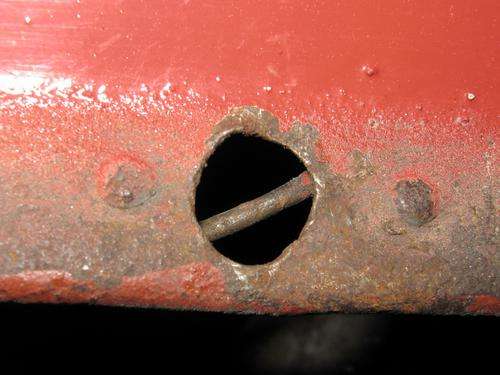 The spring wire piece is secured with round head rivets, head on the bottom and peened over on top. Photos compliments of André M. Kunz in Frauenfeld, Switzerland.