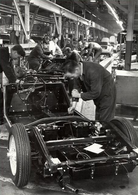 Or, we have this picture from the MGA production line. This has the thinner leg of the seal on the rear side of the floorboard, and the thicker rounded leg of the seal on top.
