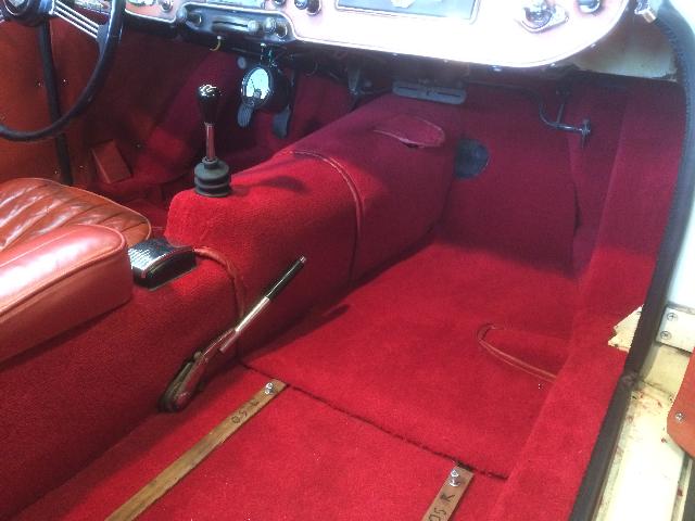 "A problem with carpets glued down with a felt underlay in a roadster is that they retain moisture after a rainy soaking. Many cars have suffered rust problems because it's not easy to dry out the carpets. Despite the advantages (heat and sound insulation) I did not want to fit felt underlay. I also wanted all my carpets to be easily removable.